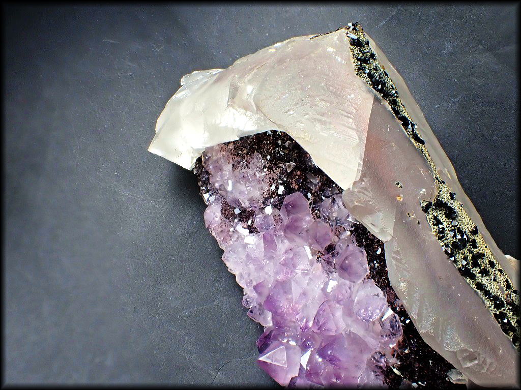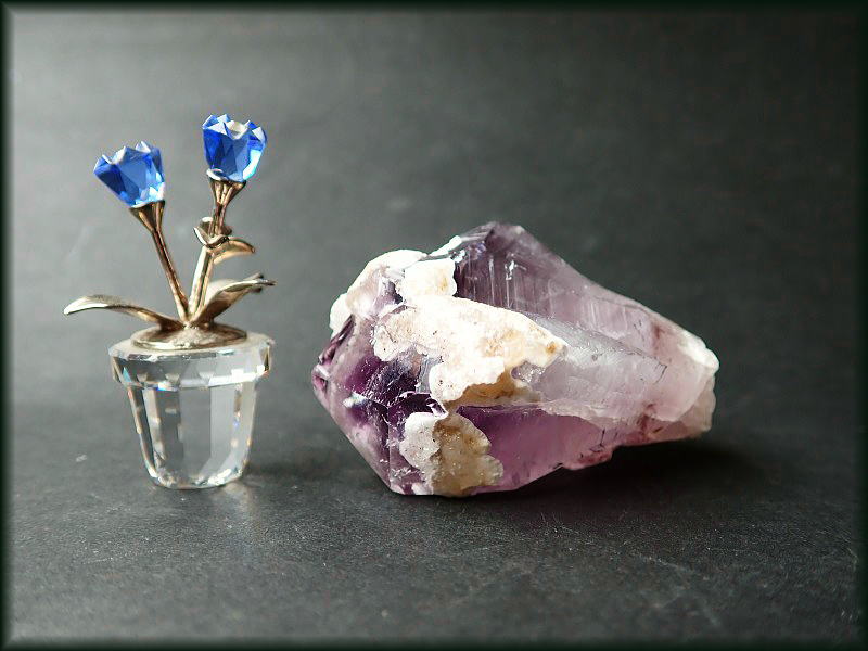 クリストバル石を伴う紫水晶 Brazil 4800円 動画へのリンク