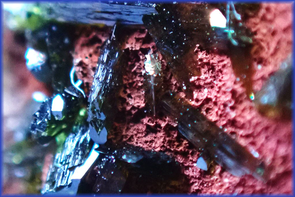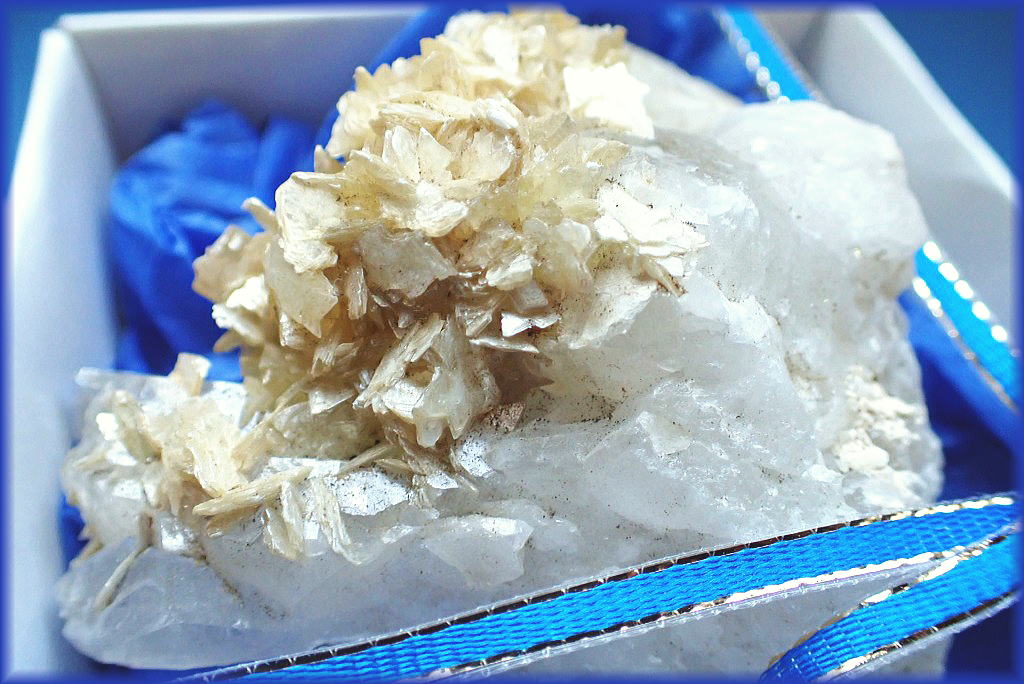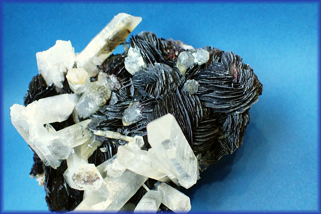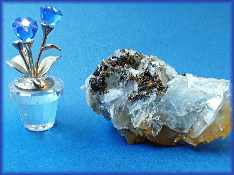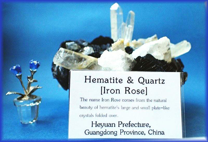 ガーデンクオーツ(インターフェレンス)を伴う花弁状の赤鉄鉱です。