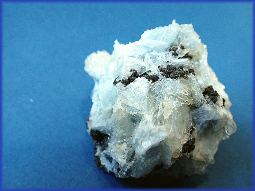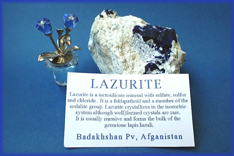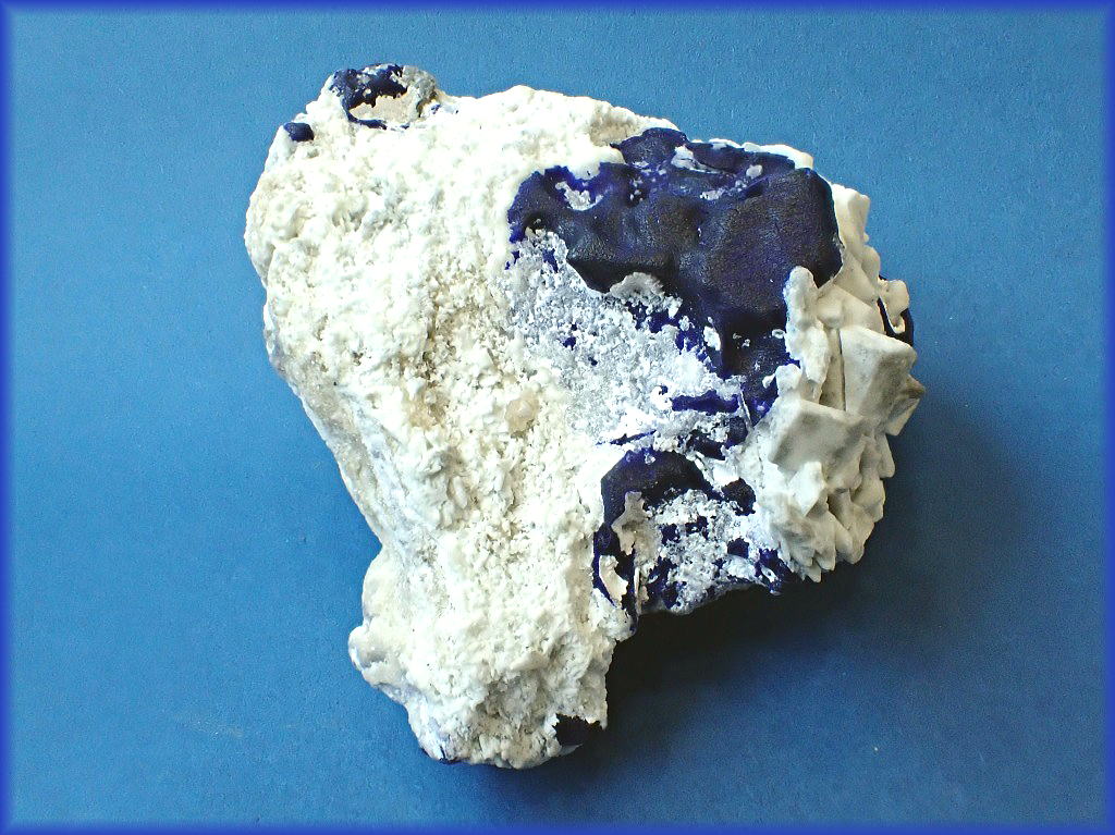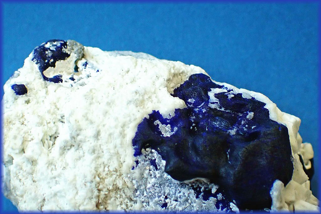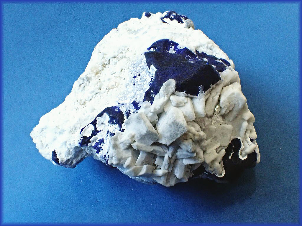 銀雪に顔を覗かせたラピスラズリの結晶です。