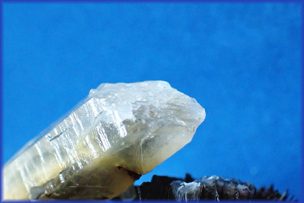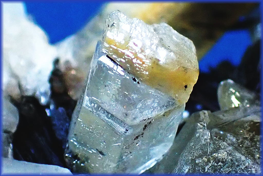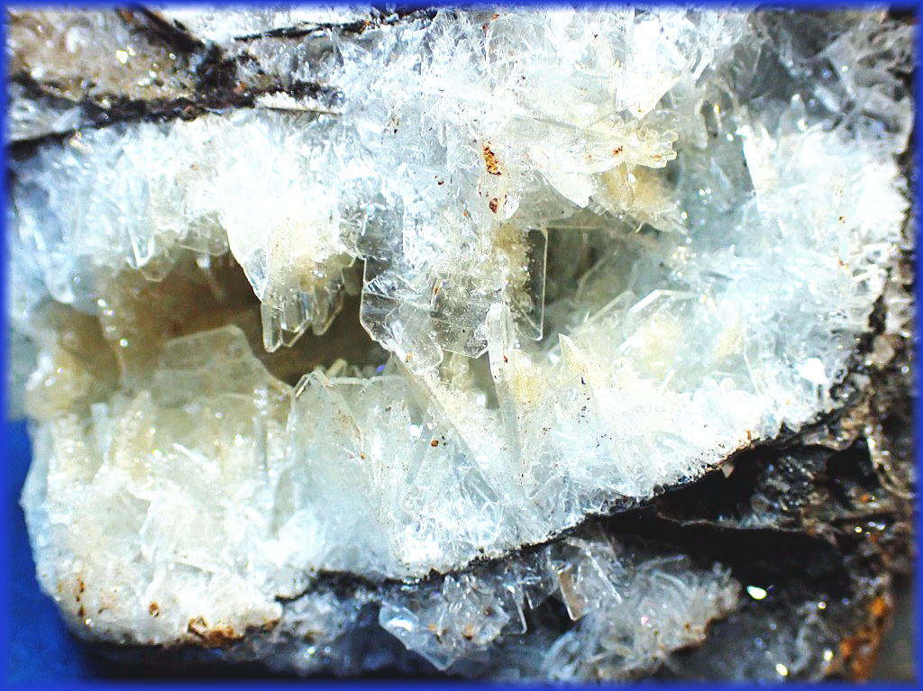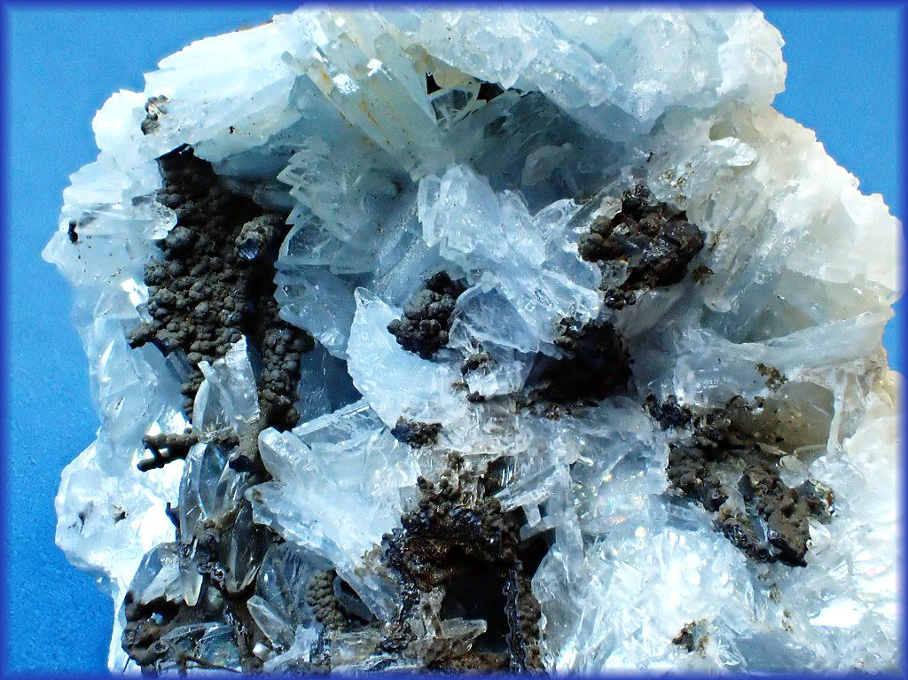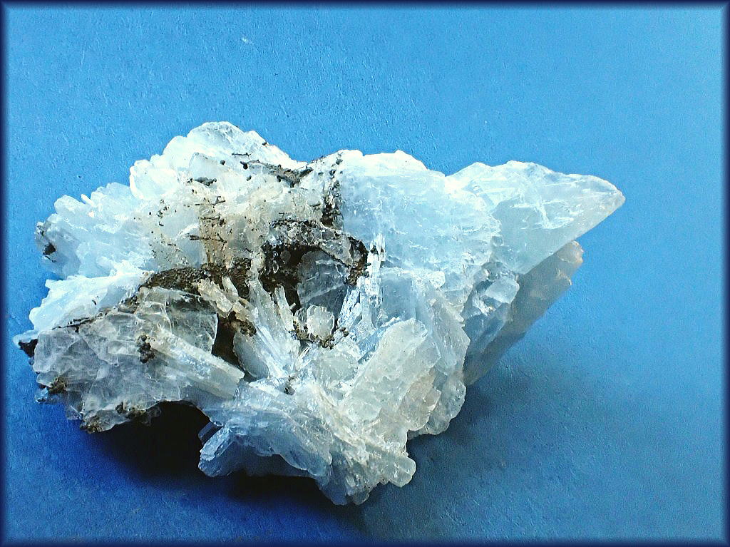 銀雪に顔を覗かせたラピスラズリの結晶です。
