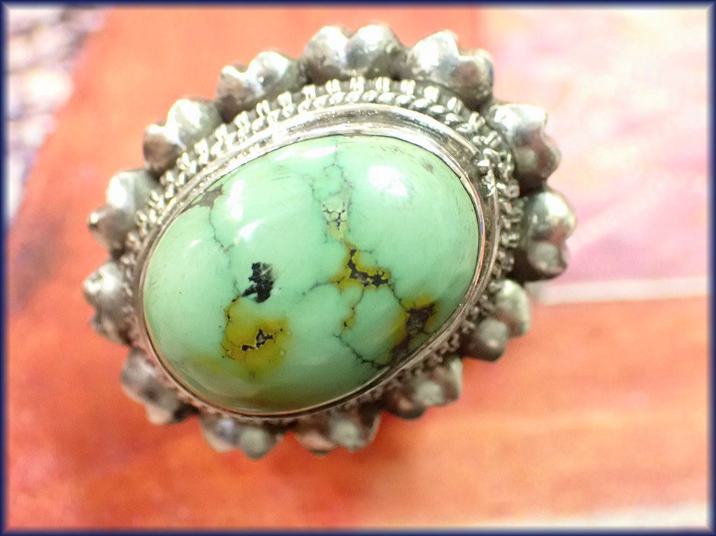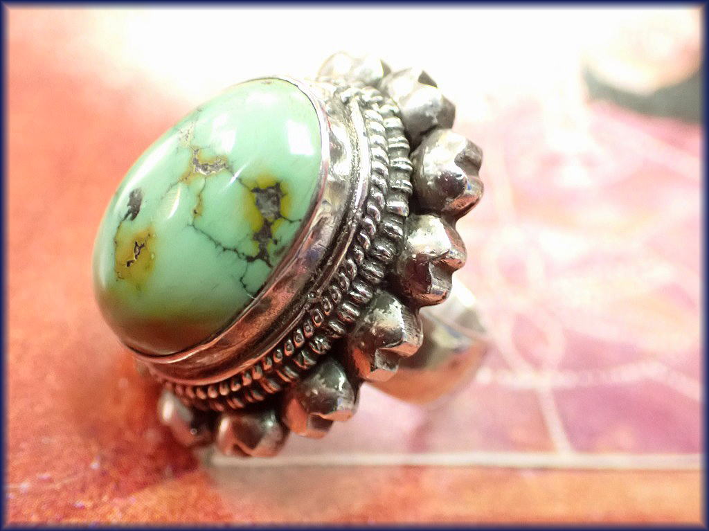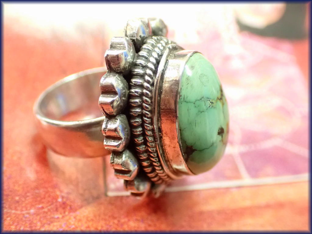 チベタン ターコイズ シルバーリング ネパールの工房より 6800円